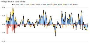 تدفقات صافية $BTC الأسبوعية لصناديق ETF = +70.2 مليون دولار سلسلة نهاية من 4 أسابيع متتالية من التدفقات السلبية الخارجة بمجموع 4.35 مليار دولار