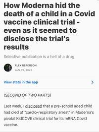 Každý by měl chápat – @moderna_tx AKTIVNĚ ZATAJIL smrt dítěte ve své mRNA klinické studii s vakcínou proti covidu – výsledky rozřezal a rozdělil, aby je mohl dál zveřejňovat, aniž by přiznal smrt. A "nezávislí" výzkumníci, kteří s tím pracovali, to nezastavili.