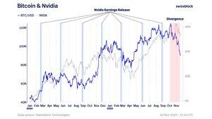 Současná divergence nám naznačuje, že slabý tisk NVDA by mohl vyvolat pokles BTC, na což se býci již připravují. Silný beat by mohl znamenat začátek silného oživení, které by snížilo rozdíl.