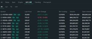 According to the Hyperliquid interface, HIP-3 custom markets are now live, with over $500 million in trading volume over the past 24 hours. There are currently three segments — xyz, flx, and vnti — covering more than 20 tokens, mostly based on equity underlyings. XYZ100 has recorded $320 million in 24-hour volume, while NVDA and GOOGL have reached $66 million and $45 million respectively.