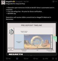 El equipo de MegaETH anunció inicialmente que los depósitos abrirían el 26 de noviembre a las 9:00 de la mañana EST, con un límite de 250 millones de dólares