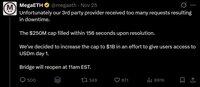 Tras la corrección, cualquiera que actualizara captaba la ventana de apertura, lo que hacía que el límite de 250 mm se llenara en solo 156 segundos. El equipo planeó entonces aumentar el tope a 1.000 millones de dólares a las 11 de la mañana EST.