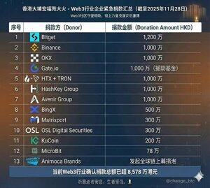 Hongfu Court Fire Tai Possa, Hongkongissa – Yhteenveto hätälahjoituksista Web3 Industry Enterprisesilta (tilanne 28. marraskuuta 2025) Web3-yhteisö tukee toisiaan, ja ketjun sisäiset voimat tukevat katastrofin jälkeistä jälleenrakennusta