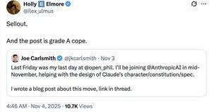 En pidä siitä, että olen niin ankara, mutta Holly Elmore on yksi vähiten sympaattisista viestijöistä tekoälyn turvallisuusliikkeessä, ja se on itse asiassa melko kiistanalainen ala.