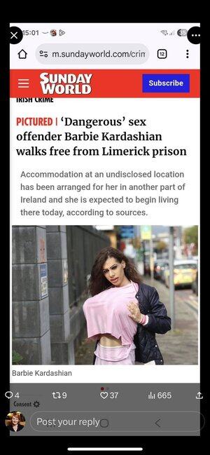 Barbie Kardashiania pidettiin jatkuvassa eristyssellissä, koska hän oli vaaraksi kaikille – tähän aamuun asti, jolloin hänet vapautettiin Limerickin kaduille