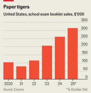 les ventes de livrets d'examen scolaire ont triplé depuis le lancement de ChatGPT (de 100 000 $ à 300 000 $) alors que les enseignants font plus de tests en classe