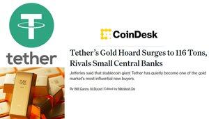 Tether memiliki 116 ton emas, menjadikannya salah satu pemegang bank non-sentral terbesar.