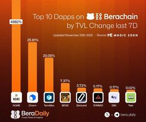 10 Dapps Berachain Teratas berdasarkan Perubahan TVL (7D Terakhir) 📈