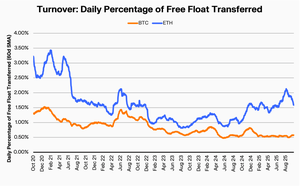 Perputaran rendah untuk kedua aset, meskipun lebih tinggi untuk ETH.
