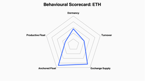 Perputaran yang lebih tinggi dan float produktif yang besar menunjukkan ETH diterapkan di seluruh staking dan dalam DeFi. Float berlabuh tinggi dan pangsa pertukaran yang jatuh menambah kualitas cadangan, menjadikan ETH sebagai hibrida utilitas/SoV.