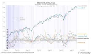 Di seguito mostro le stesse classi di attivi ma ora come momentum dei prezzi, che utilizzo per individuare gli outlier di momentum. Ancora una volta, l'oro ha mostrato un ottimo momentum nonostante sia in una correzione significativa, mentre il bitcoin è dall'altra parte.