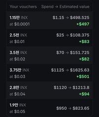 Con i coupon $INX, sembra difficile anche recuperare le commissioni che ho pagato. Per fare profitto, non resta che vincere alla lotteria. Ci sono lotterie settimanali, lotterie per traguardi, ecc., ma se non vinci, finisci in perdita