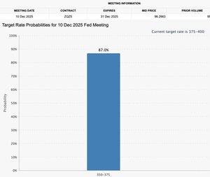 Neste FOMC-møte er om 6 dager. FedWatch priser inn en 87 % sjanse for et kutt på 25 basispunkter. Hva tenker du? Plasser spådommen din på @BRKTgg