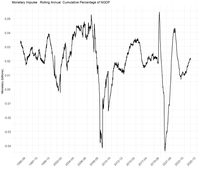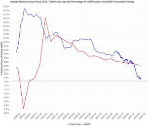 Den totale impulsen med monetær impuls justert til «kjerne» har en total impuls nær å bryte 0 og tyder på at en resesjon allerede har startet.
