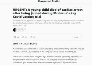 EEN KIND IS OVERLEDEN IN DE EIGEN KLINISCHE PROEF VAN MODERNA VAN DE MRNA COVID VACCIN, EN HET BEDRIJF HEEFT DE OVERLIJDENDE VAN HET PUBLIEK VERBORGEN.