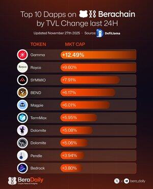 Top 10 Berachain Dapps op basis van TVL-verandering (Laatste 24u) 📈