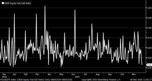 De put/ call ratio van CBOE voor aandelen daalde op vrijdag naar het laagste niveau sinds mei