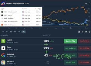TL; DR: Apostar "SIM" para NVIDIA + Apple + Alphabet permite que você ganhe $1 por $0,97, assumindo que seja 100% certo que qualquer uma dessas opções acabará sendo a Maior Empresa no final de 2025.