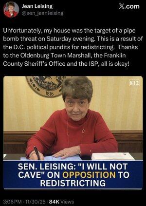 Senador estadual republicano de Indiana. Agradeço que ela não tenha cedido, mas todos ainda têm medo de usar o nome de Trump. Acho que fazer isso aumenta exponencialmente as ameaças. Trump governa o Partido Republicano com medo e intimidação. Que festa quebrada.