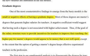 Professores mais qualificados = piores resultados Pesquisas mostram que professores com mestrado na verdade pioram o desempenho dos alunos Como afirmam os autores, "o salário mais alto para mestrados parece ser dinheiro mal gasto" fonte: NBER