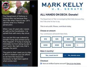 LOL. O senador democrata Mark Kelly está aparentemente a enviar mensagens a PEDIR dinheiro depois de o @DeptofWar ter anunciado que estava a considerar um potencial JULGAMENTO MILITAR por encorajar as tropas dos EUA a DESAFIAR ordens de Trump e Hegseth.
