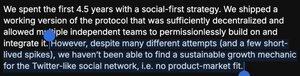 Nu förväntar du dig att dessa personer ska gå igenom decentralisering, en sämre användarupplevelse + en inlärningskurva bara för att använda din lösning på ett problem som egentligen inte existerar.