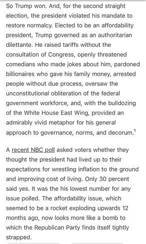 När jag pratar med Trumps väljare säger många att han gör precis vad han lovat. @DKThomp säger att tisdagens val visar att andra väljare inte håller med: "Trump valdes för att vara en president som man hade råd med, men regerade som en auktoritär dilettant."