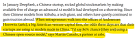 Detta är det exakta citatet (från): "När entreprenörer kliver in på kontoren hos Andreessen Horowitz (a16z), ett stort amerikanskt riskkapitalbolag, är oddsen numera stor att deras startups använder AI-modeller tillverkade i Kina. ' Jag skulle säga 80% chans att de använder en kinesisk öppen källkodsmodell', säger Martin Casado, partner på a16z.
