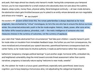 Jag måste vara ärlig att graviditeten konsekvent ändrar mina politiska åsikter, smak, osv. Vet inte om det är så att det står mer på spel ju fler barn jag har, eller om hormoner verkligen påverkar din uppfattning, eller båda...