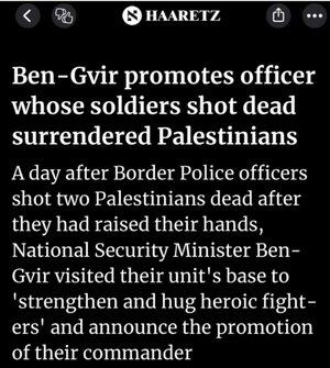 Найкращий спосіб отримати підвищення в ЦАХАЛі — це скоїти відверті воєнні злочини. Чи будемо ми все ще робити вигляд, що це не геноцидна армія? Коли ж люди, чорт забирай, прокинуться?