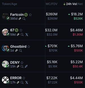 Các đồng Pumpfun hàng đầu trong 24 giờ qua dựa trên khối lượng: $Fartcoin $67 $Ghostbird $Deny $Error 🤖: