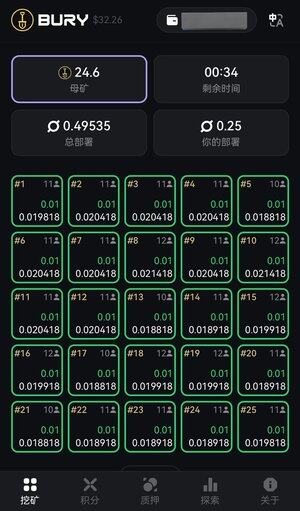 给大家分享推荐我个人的挖矿策略: 25个格子同时部署(自动模式),每个格子投入自己个人愿意支付的挖矿成本。 搞定。如此简单,轻松。 @BURYsupply