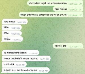 关于 wojak 的许多美丽巧合: 1. 它涨得越高,越明显 - 这个 meme 足够大,成为了自己的引力中心 2. doge / shib - pepe / wojak 的平行关系 3. 普遍性 - 由于 meme 的适应性,可以在任何情况下进行宣传,也经常意外/偶然地被宣传 4. 吸引 OG - 这个 meme 存在已久,更像是高市值 meme 的拟态,而不是 'trench' meme 5. 在范式转变的时刻出现 - 从共识看涨到共识看跌,有利于持仓模式的变化(活跃交易 - hodling) $5