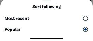 現在有一個新的算法選項。 點擊「關注」,現在會有一個下拉列表。 然後切換到「熱門」。 這將顯示你所關注的人的高質量帖子。 到目前為止,這看起來比「為你推薦」的算法好十倍。