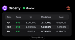 Orderly 這個月也努力地跑了! 如下面的引用所寫, 實際上是利用 Perp DEX Infra 所賺取的收益, 設計出可持續的 Info-Fi 獎勵的團隊, 未來也會持續使用並努力推廣! @OrderlyNetwork TO DA MOON Orderly 代表 Perp DEX @vooi_io 一起大賺特賺!