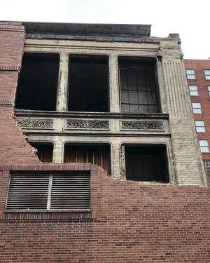 辛辛那提市中心建築的磚塊拆除揭示了19世紀的歷史外觀。