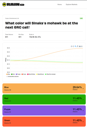 哈哈大笑,@tekr0x 在 @Rain__Protocol 上建立了一個預測市場,預測我在下一次 @arbitrum DAO GRC 通話中莫霍克髮型的顏色會是什麼。