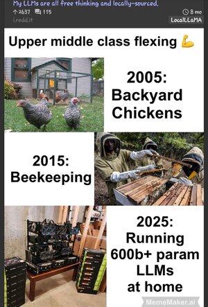 哈哈哈 有人在 r/LocalLLaMA 上發了這個迷因,我剛看到 “我的 LLM 都是自由思考和本地來源的” 他們用了我從 8x 升級到 14x 時的照片,哈哈哈
