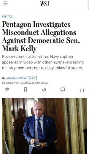 凱利參議員在視頻中的言論是「對法律內容的100%準確表述。」 「沒有任何美國公民應該面對這種荒謬的調查。」 - 專業軍事司法專家尤金·菲德爾教授,發表於《華爾街日報》