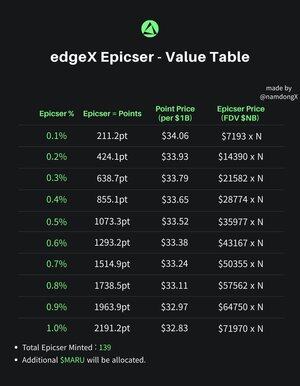 截至目前為止,在 @edgeX_exchange 發行的 133 個 Epicser,以及此次 UGC 活動將發行的 3 個 Epicser,考慮到在韓國 AMA 中提到的 $MARU 上市和 $EDGE 上市之間的空白期內將進行的 Epicser 活動計劃,預計在 TGE 前將總共發行 139 個。