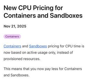 🚨 我們已經更新了 @cloudflare 的容器定價(因此沙盒的定價)只根據使用量收費,而不是根據分配量收費。 這將對於代理性用例的沙盒執行產生巨大的影響。
