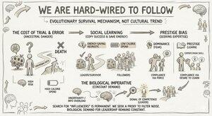 ➥ 我們天生就會跟隨 認為「影響力」是現代社交媒體的產物,我們可以選擇不參與,這種想法是很誘人的。 然而,從進化的角度來看,跟隨領導並不是一種文化趨勢,而是一種生存機制。 我們無法關掉這個機制,因為它已經寫入了我們的生物學中。 試錯的代價 在祖先的環境中,個體學習是非常危險的。 吃一種未知的漿果來看看它是否有毒,或單獨測試一條新的狩獵路徑,都有很高的死亡風險。 為了減輕這種風險,人類發展了社會學習。我們進化出來的方式是掃描環境中的成功並模仿它。 這是一種節能的啟發式,但有點 F**ked up: 為什麼要花費卡路里和冒著死亡的風險自己去摸索,當你可以簡單地模仿已經生存下來的人呢? 這就是為什麼在某位 KOL 分享後,人們會熱衷於追蹤流動性不足的 meme 幣圖表。 — ➤ 威望偏見 威望偏見的研究在進化心理學中,特別是雙重繼承理論的研究(特別是約瑟夫·亨利奇和弗朗西斯科·吉爾-懷特的工作 ~ 研究的連結在資訊圖表 ALT 描述中),表明人類有一種特定的認知適應,稱為「威望偏見」。 我們本能地區分兩種類型的地位: ▸ 優勢:由於對力量的恐懼而驅動的服從(霸凌者)。 ▸ 威望:由學習的渴望驅動的服從(專家)。 我們在基因上被編程去尋求「威望」,即那些顯示出高技能、成功或知識標誌的個體,並對他們表示尊重。 作為這種尊重的交換,我們可以在不支付「代價」的情況下獲取他們的信息,而不必以艱難的方式學習。 生物學的必然性 這意味著尋找「影響者」(字面意義上的影響者)的需求是人類操作系統的一個永久特徵。 當我們感到不確定或信息過載時,我們的大腦不會尋求獨立;它們尋求代理。我們尋找能力的信號來過濾噪音。 市場動態和平台可能會改變,特定的標籤可能會失去價值,但對領導的生物學需求保持不變。 這就是為什麼 KOL 業務將持續存在,不僅在 web3 中,還在許多其他行業中。 總之,我們並不是想停止跟隨;我們只是在等待更好的信號來跟隨。