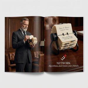 (靈感來自 WSJ 雜誌的時尚廣告,這些廣告都有相同的算法佈局:1 頁有模特展示新的奢華珠寶或手錶;相鄰頁面單獨展示物品)